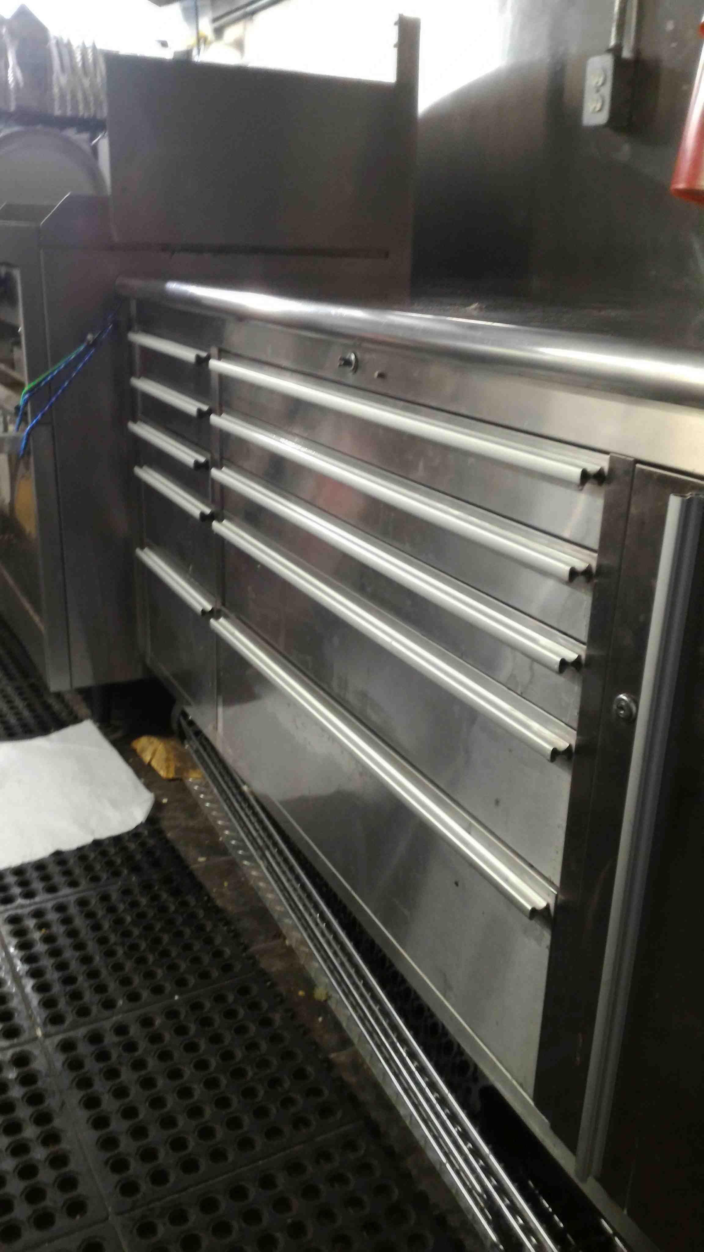 Trailer inside storage unit (tool chest with stainless steel counter)